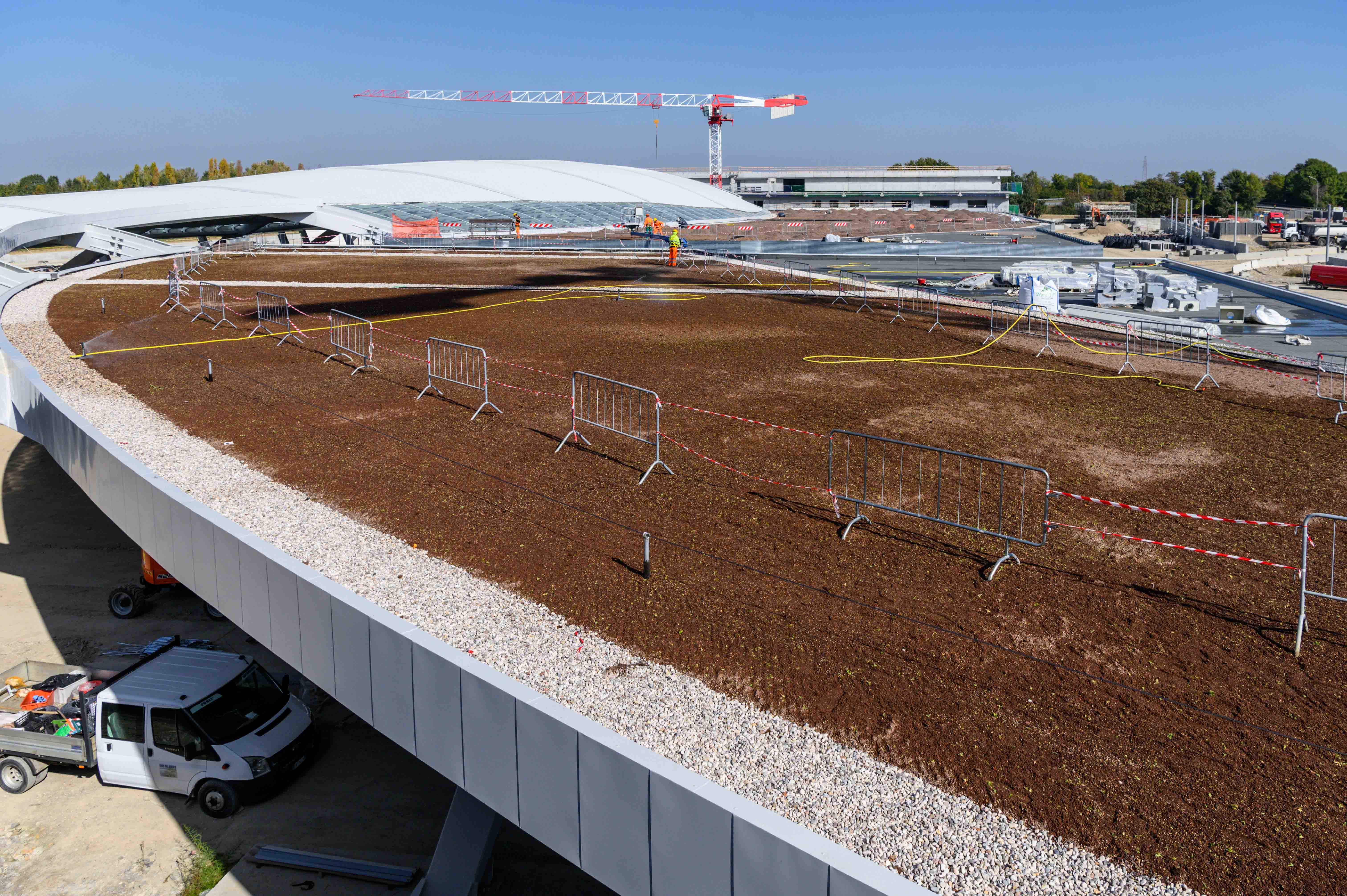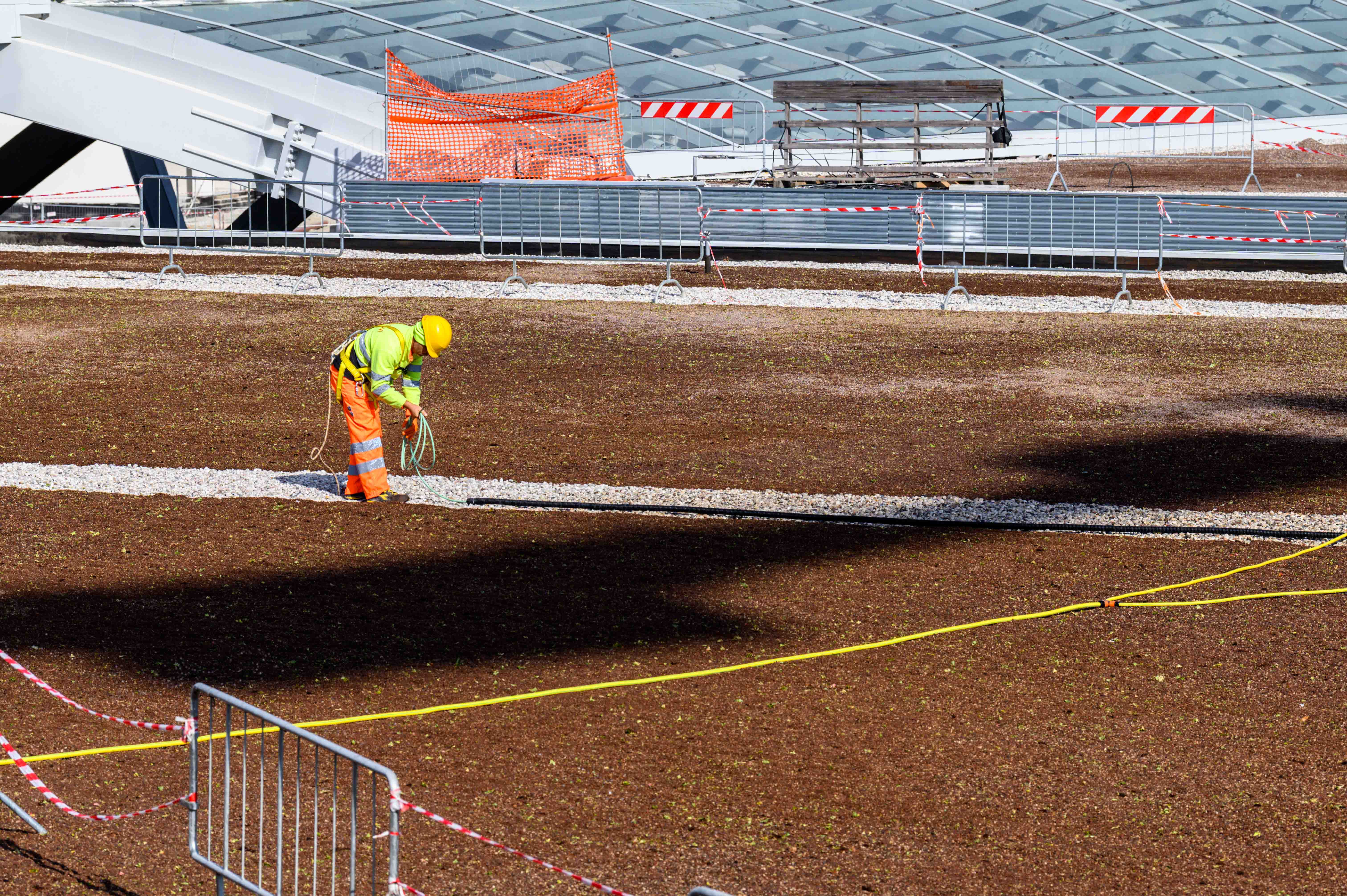 È iniziata nei giorni scorsi la semina dell’erba sui 6.500 metri quadrati di tetti del deposito del tram di Borgo Panigale. A breve ci sarà anche quella sugli altri edifici del Capolinea, che porterà entro l’estate prossima ad avere circa 8mila metri quadrati di prato sul tetto.