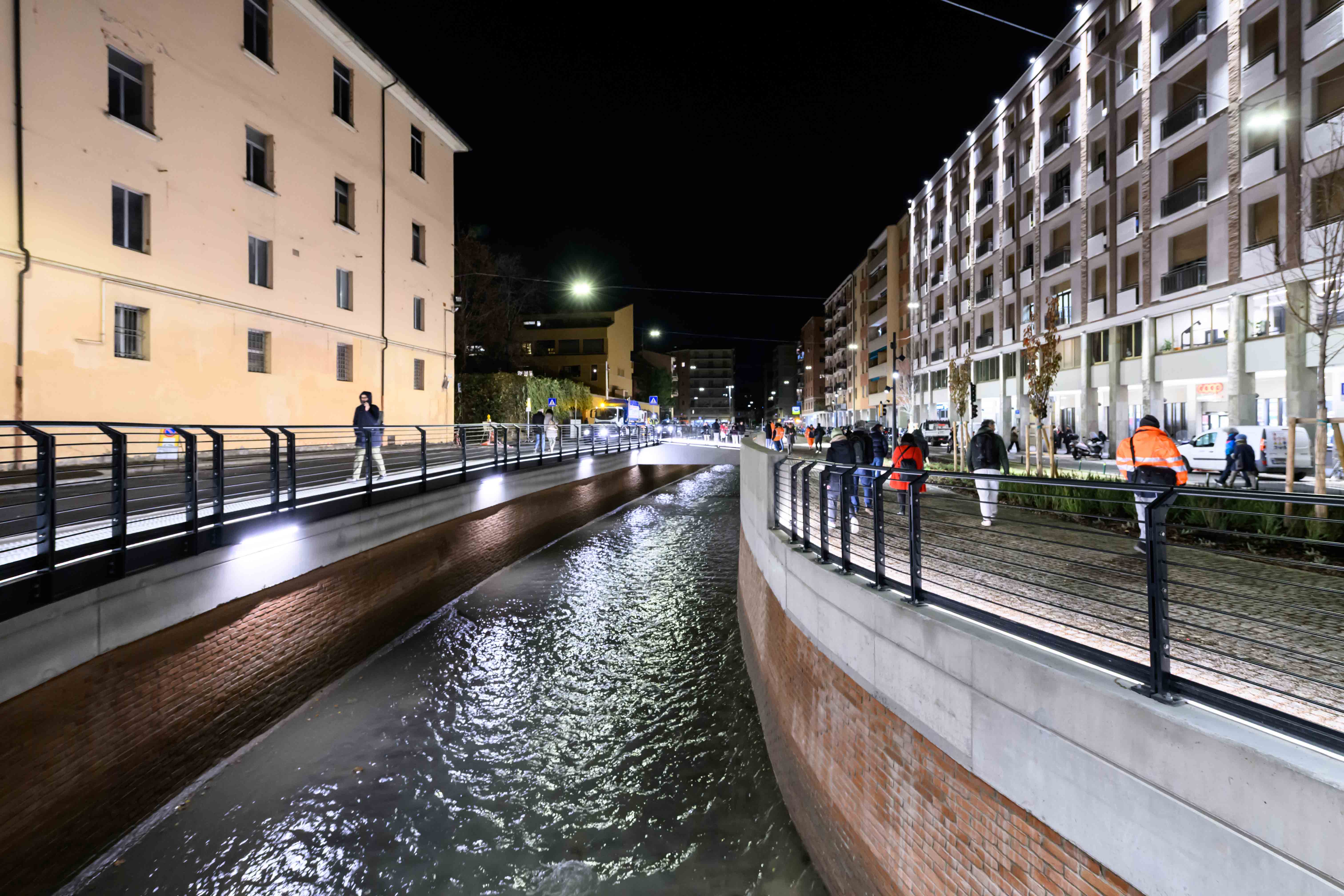 Non solo. L’intervento di riqualificazione, iniziato nella primavera del 2024, ha riguardato altri aspetti non visibili ma per questo non meno importanti, come il rifacimento e la messa in sicurezza della copertura del corso d’acqua e delle sue spalle strutturali, nei tratti compresi tra via San Felice e la rotonda, fino a via Ugo Lenzi, e nelle adiacenze della Chiesa, incluso l’incrocio con via delle Lame.