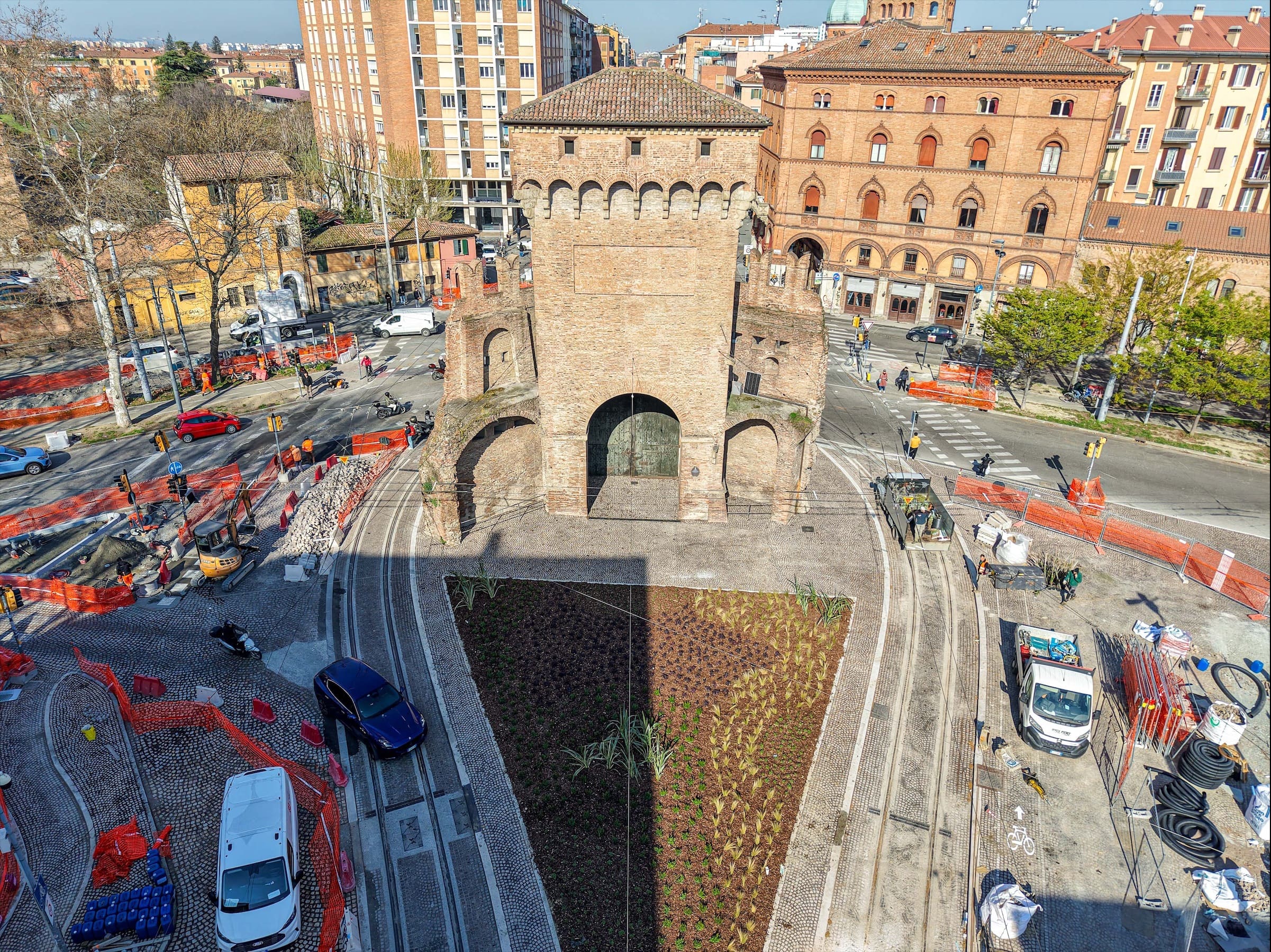 - 1.254 metri di binari posati: 367 metri di binario doppio (734 totali) tra la Porta e via Riva Reno e 520 metri di binario singolo tra via Riva Reno e incrocio via Ugo Bassi/Marconi,