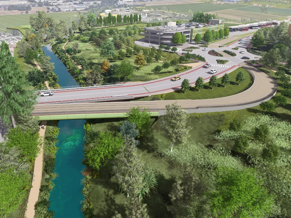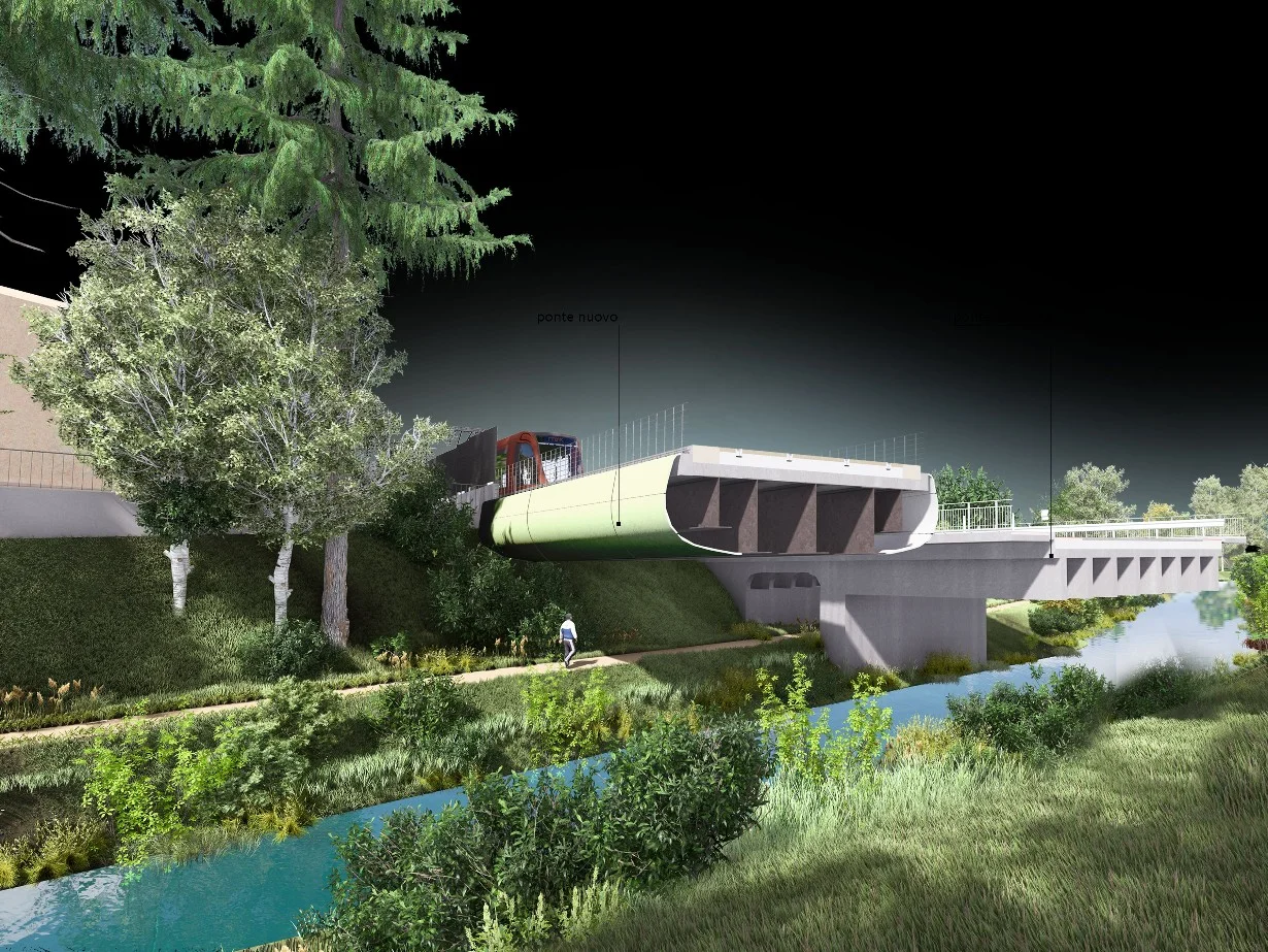 Dopo l’incrocio con Via Bentini, che sarà trasformato in una rotatoria, la tranvia attraverserà il Navile con un nuovo ponte a sud di quello esistente e proseguirà a fianco di Via Bentini risalendo di quota fino a giungere in prossimità del piazzale della stazione di Corticella.